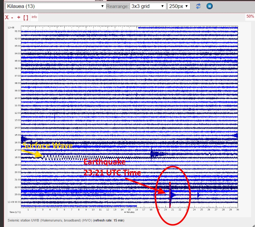 Kilauea Seismograph Analysis (+ Surface Wave) - 12/08/2016