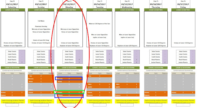 - Jupiter at Geocentric Opposition to Mars and Uranus at Conjunction