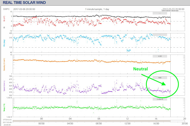 .Forecast... Geomagnetic field conditions are expected to be at unsettled to active levels on day one (07 Mar), with occasional quiet periods, due to the enhanced solar wind environment. Day two (08 Mar) is expected to be at mostly quiet to unsettled levels. Conditions are expected to return to mostly quiet levels by day three (09 Mar) as CH HSS effects weaken.