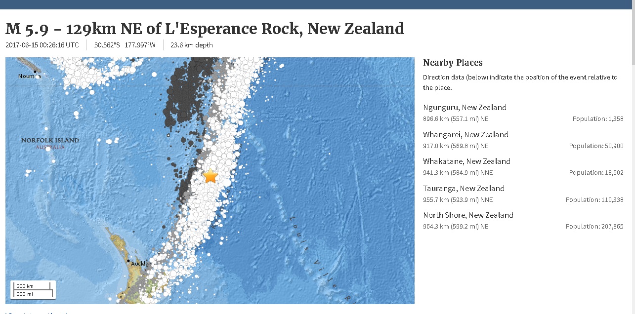 M 5.9 - 129km NE of L'Esperance Rock, New Zealand