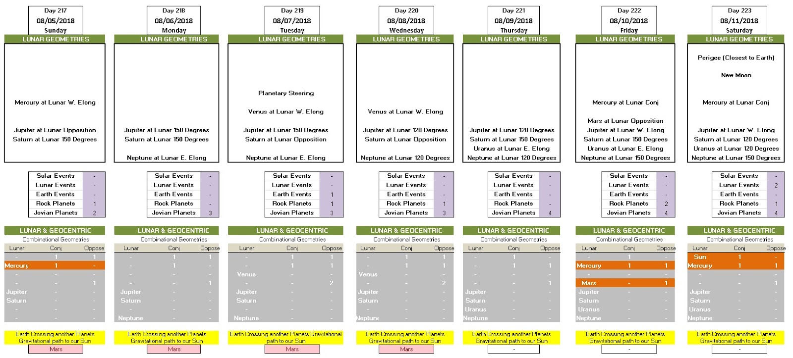 NASA JPL Data - DAILY Lunar Geometries