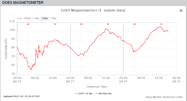 .Forecast...Unsettled to active levels are likely on 24 Jul due to CME influences.25-26 Jul is expected to see a return to mostly quiet levels.